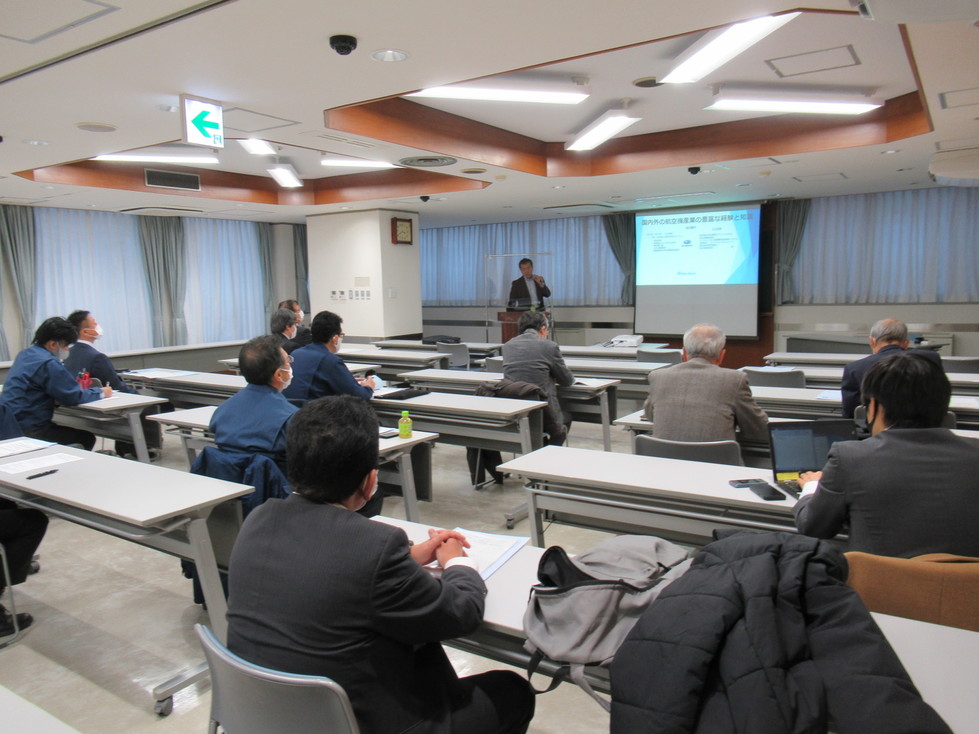セミナーは「航空機産業参入への機会拡大に向けて」と題して、民間航空機産業の現状・海外の航空機産業について(海外事例)及びOEM(航空機や航空機用エンジン製造企業)が下請企業に求めるものなど具体的な事例を含めて、説明を行いました。