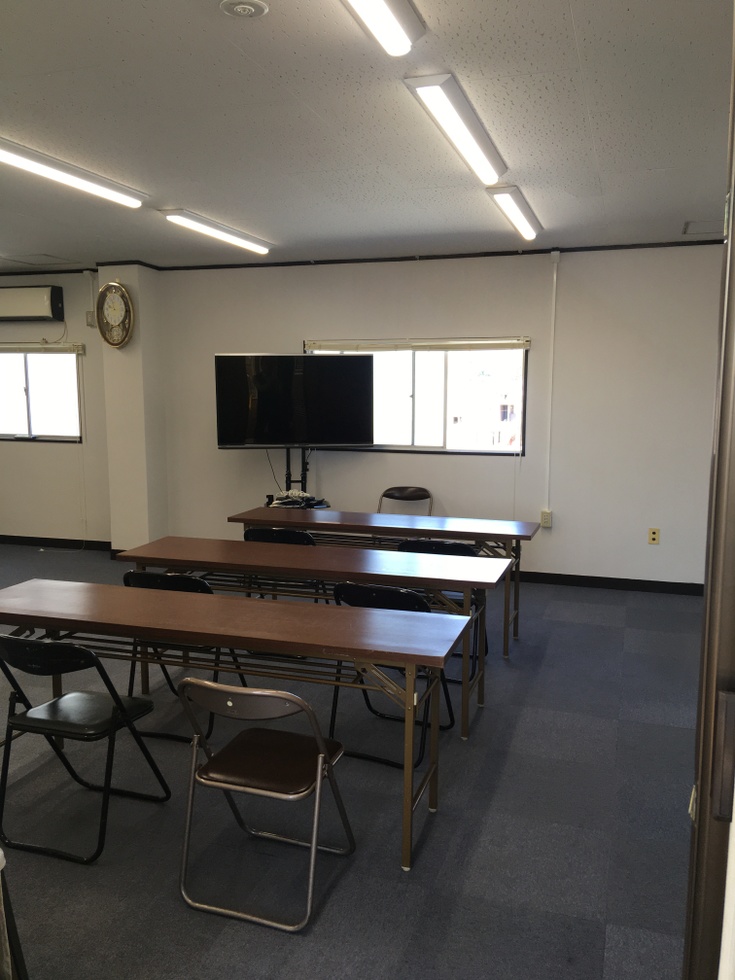 30人規模のミーティングスペースを当社はご用意しています。65インチのモニター、スクリーン対応のプロジェクター、映像機器の準備もございます。