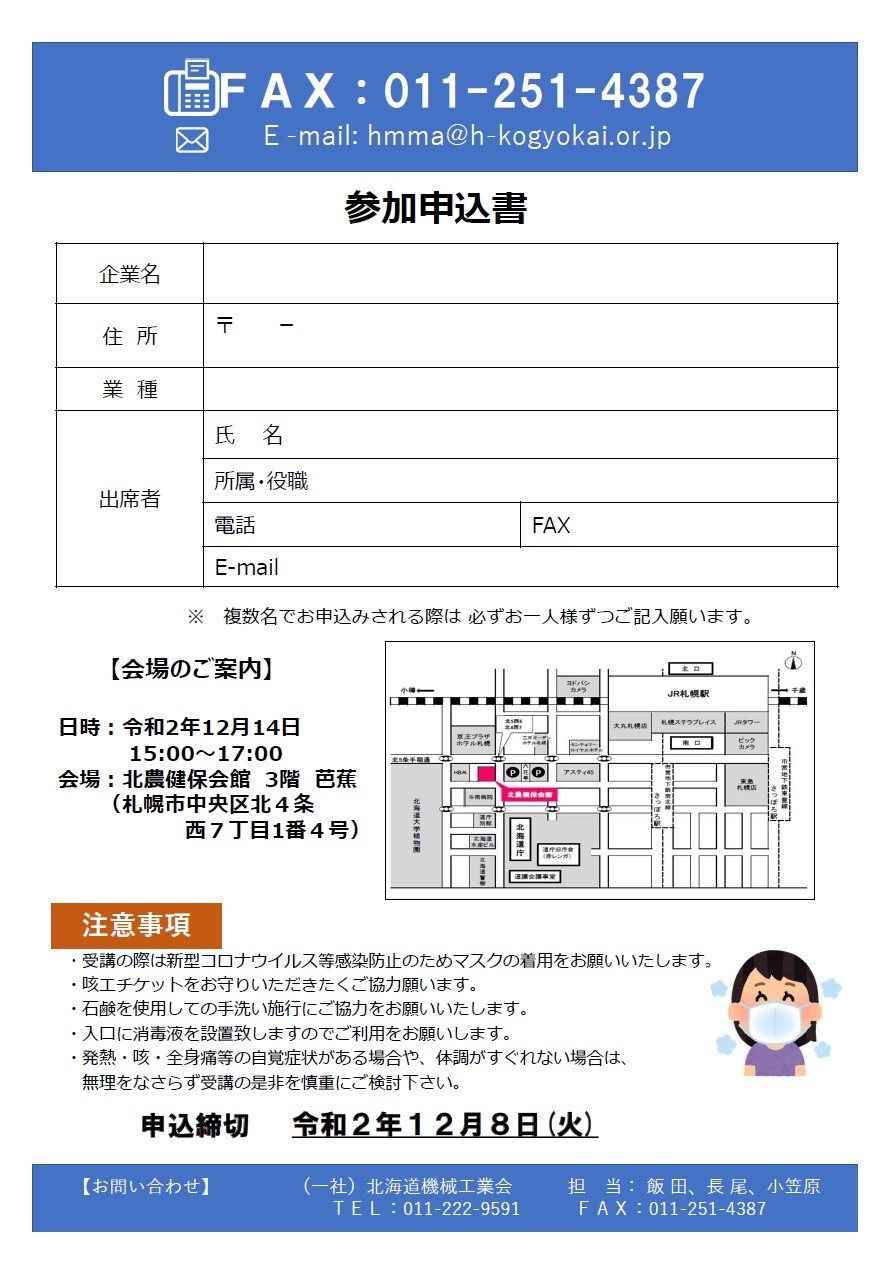 Hokkaido and the Hokkaido Machine Industry Association have been holding technical lectures for manufacturing companies in Hokkaido to promote their entry into the growing aircraft-related industry. Aero Coach was commissioned to conduct the seminar on Monday, December 14, 2020, at the Hokunoh Kenpo Kaikan.