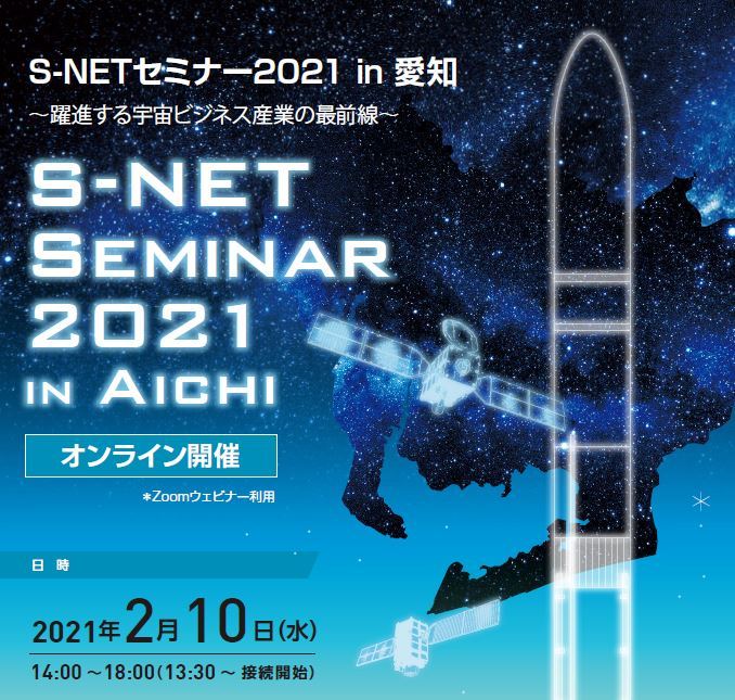 愛知県では、本県企業の宇宙産業への事業展開を促進するため、現在の宇宙産業の動向や今後の展開等の情報を提供するウェビナー「S-NET※セミナー2021 in 愛知」~躍進する宇宙ビジネス産業の最前線~を内閣府及び経済産業省と共同でオンライン開催します。