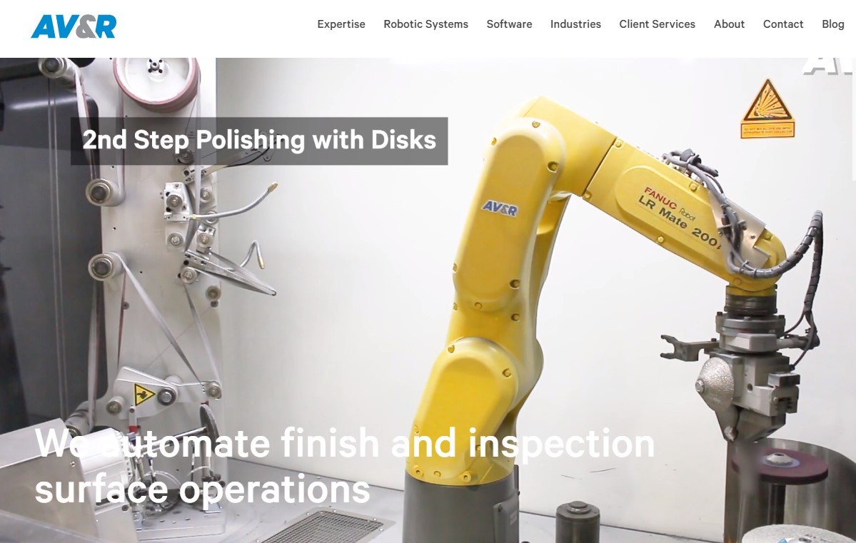 ブレードやベーンなど、エンジンにとって重要なパーツの精度確保は、燃焼効率や出力向上のカギとなっています。そのためマイクロといった単位の公差範囲の中での作業となり熟練のスキルが必要な作業でした。この作業の自動化を打破したのがカナダAV&R社です。従業員約100名のうち80名がプログラマーといった陣営で、通常のロボットプログラムにAV&R社のスキルが付加されております。AV&R社は、まずプロファイリング技術を確立、作業後のゴールを3次元で把握することに成功しました。さらには高精度な光学検査装置とのコンビネーションにより、研磨工具交換⇒研磨作業⇒研磨後検査⇒再研磨作業⇒再検査作業⇒合格後パレットに格納という工程の自動化に成功しました。このマシーンは、P&W, GE, RR社の世界3大航空機用エンジン企業の工場で使用されており、その関連する工場、世界中で数十の工場で使用されています。エンジンは、航空機用に限らす、発電機用の大型ブレードへの対応も可能であり、幅広い産業内で活躍している、最先端技術を駆使したマシーンです。